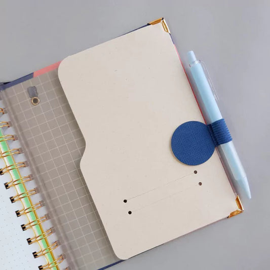 Portalapicero autoadhesivo en PU y goma, diseñado para mantener tu bolígrafo o lápiz siempre a la mano. Se adapta a distintos tamaños y se fija de forma segura en cuadernos, planners y agendas gracias a su adhesivo resistente. Un accesorio práctico que facilita tu día a día.